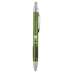 These custom printerd metal pens feature an anodized aluminum barrel. They have a gloss finish, silver trim and stylus tip with black ink.